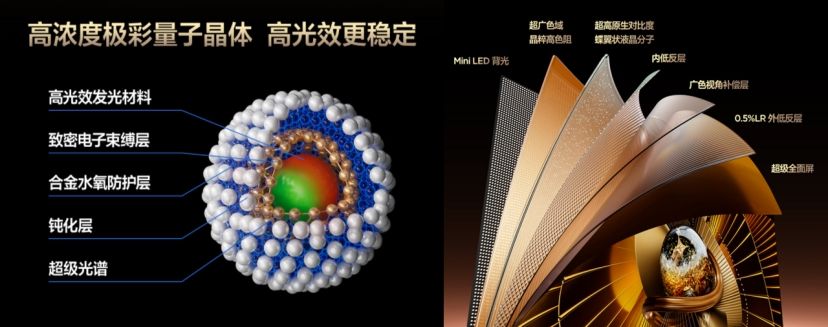 TCL SQD-Mini LED用超级量子点+超级蝶翼华曜屏的王者协同组合成功破局:超级量子点以材料升级提升激发的三原色纯度,从源头上确保混白光的高度纯净;超级蝶翼华曜屏则通过晶萃高色阻层精准剔除杂光,为实现“光谱收敛效应”,量子点发光与屏幕穿透光谱做了完美匹配,最终实现100% BT.2020高色域全覆盖。任何场景下,均能做到色彩的清晰逼真,视觉真实感拉满。