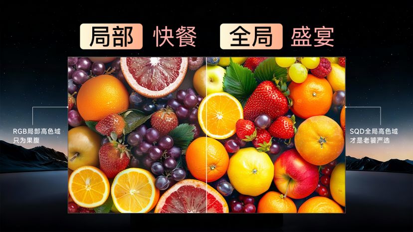 色彩表现上,当前行业“局部高色域”仅纯色显示达标,多色混合便色域值大幅下降,这一痛点始终比无可避。