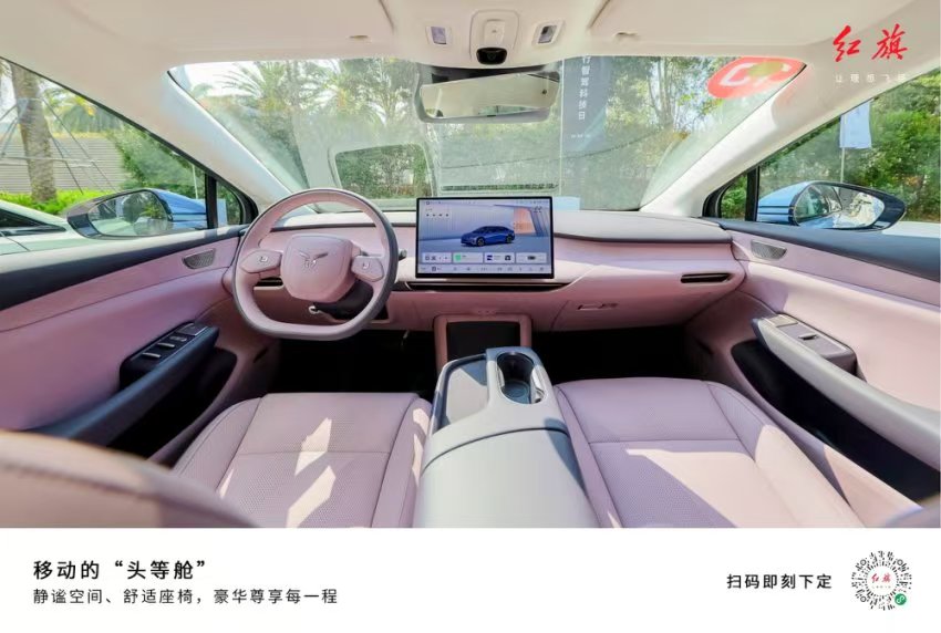除了智驾方面的突出表现,红旗天工05在豪华配置上同样诚意满满。其潮派设计融合智慧美学,智美溜背低风阻式设计、极光之翼大灯以及祥云轮毂,不仅让车辆外观极具辨识度,更在细节处彰显品质。车内更是充满巧思,车窗剪影、隐藏式伸缩挂钩、折叠小桌板等设计,为用户的车生活增添了更多美感与便利。双焦面65寸AR - HUD、15.6英寸94.48%高屏占比中控屏,带来震撼的视觉享受。舒躺尊享座椅支持14向调节,靠背最大倾角可达83度,可坐可躺,全车座椅可加热,前排座椅还具备十点位独立按摩功能。车内空调AI动态调节,配合低风噪声源设计以及可触碰区域全部软包,营造出静谧舒适的驾乘环境。1.89平方米超大全景天幕,视野通透的同时还能有效防晒,让用户尽享惬意时光。