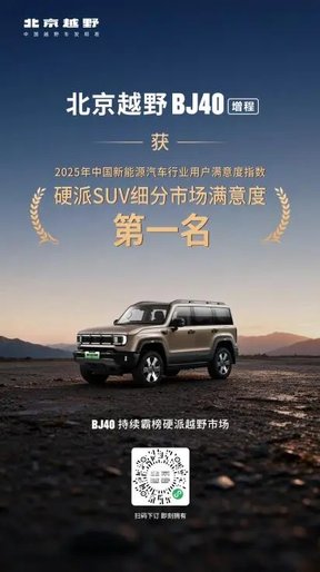 这份成功,也获得了权威品质机构的印证。在中国质量协会2025年新能源汽车用户满意度指数测评中,BJ40增程荣获硬派SUV细分市场用户满意度第一。同时,北京越野品牌也获评“市场质量信用AAA企业”。销量与口碑的双重认可,让来自国家殿堂的荣誉,在用户端得到了扎实的回响。
