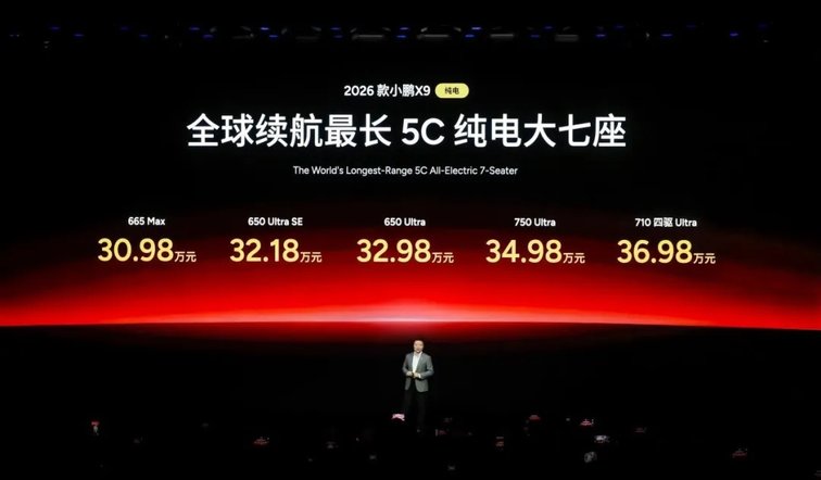 30.98万起,全球续航最长5C纯电大七座,2026款小鹏X9纯电版正式上市