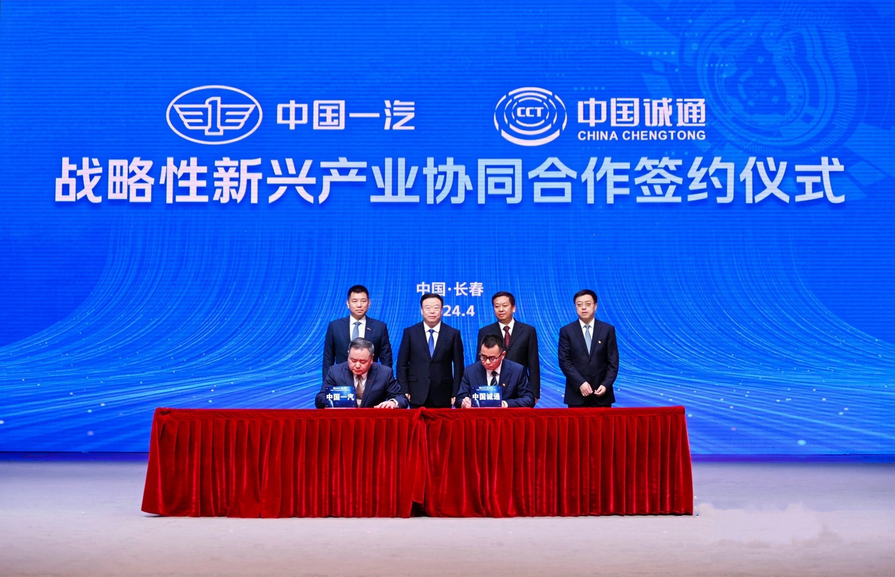 ▲中国一汽与中国诚通签署战略性新兴产业协同合作协议