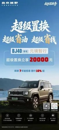 近日,为了回馈广大消费者,北京越野开启超级置换季活动。该活动分为两部分,第一部分以“超级置换+超级省油+超级省钱”的组合拳,针对BJ30旅行家混动版、BJ40增程元境智行两款车型,推出了极具竞争力的置换政策;第二部分则为BJ40增程赤兔版和BJ40探险家推出了专属优惠福利,让更多新老车主感受到了品牌的十足诚意。此次活动时间3月24日至4月30日。