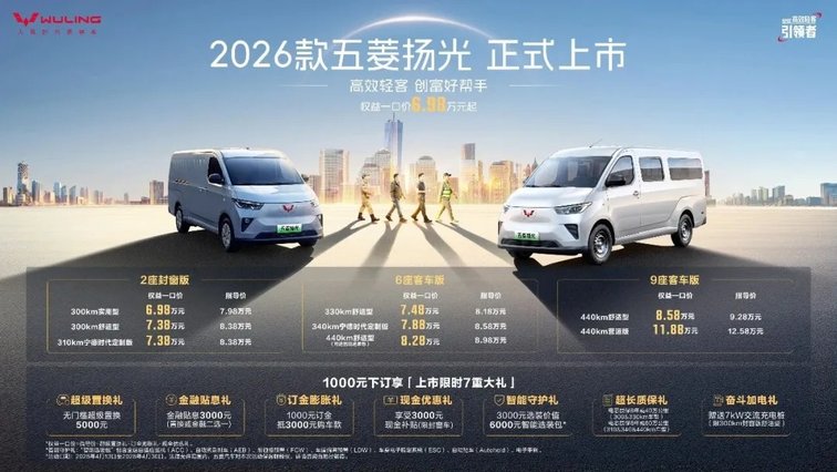 “高效轻客,创富好帮手”。4月13日,2026款五菱扬光通过一场高效创富场景挑战直播正式上市,限时一口价6.98万起!作为新能源轻客标杆车型,五菱扬光已连续24个月蝉联细分市场销冠,本次升级精准聚焦城配司机提升创富效率的核心需求,全新搭载基于五菱“天·灵·神”技术体系打造的三大商用车专用技术,在维持原售价的基础上,实现“续航加码”、“动力加码”、“智能加码”、“空间大码”的全方位升级。以“只加码,不加价”的诚意助力司机开启高效创富新一程;更用硬核技术定义高效轻客新标准,持续引领行业良性发展。