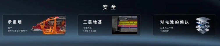 安全性上,泰岳平台做了很多“傻实在”的事情。泰岳平台首次把军车车身设计标准搬到了一台MPV上,打造车上的“承重墙”;地板七横六纵结构,足足做了“三层地基”。另外,电池开发过程对安全品质的追求近乎偏执:电芯生产原材料追求“零杂质”、制造过程力求“零缺陷”、电芯成组强调“零短板”。不仅如此,电池包还做了15层的立体硬防护结构;面对特殊情况,电芯侧面都包了一层能耐1000℃高温的航空级隔热材料,顶部还有一层耐1200℃陶瓷化阻燃结构,给每个电芯筑成了一个“安全屋”。