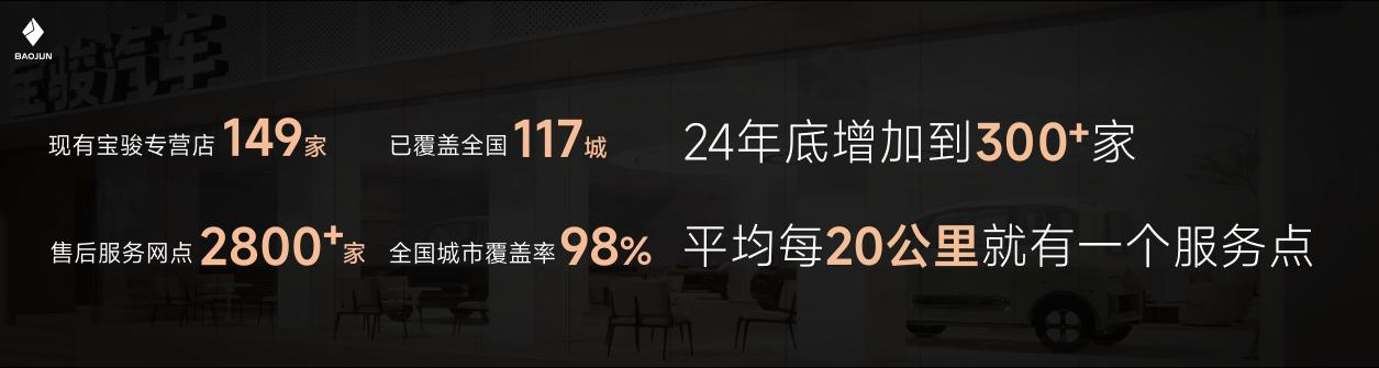 重回主流市场,宝骏品牌从产品到渠道已做足准备!渠道体系将进一步升级,目前宝骏品牌已有覆盖全国117个城市的149家专营门店,年底全国宝骏专营店将增至300家以上,为用户提供优质便捷的购车服务。同时,依托上汽通用五菱全国2800多家门店的有力服务体系,城市覆盖率达98%,平均每20公里就有一个服务点,让每位用户用车更为安心。