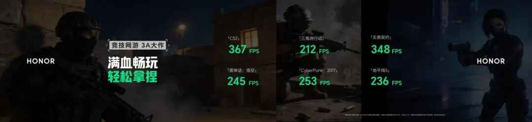 荣耀WIN游戏本 H9凭借全新Gaming Turbo X技术,实现全域性能调优、整机动态超频,在游戏体验上全方位升级,为玩家带来最强“打洲本”体验。在开启Gaming Turbo X技术后,荣耀WIN游戏本 H9可实现《三角洲行动》212 FPS,《黑神话·悟空》245 FPS,《赛博朋克2077》253 FPS。