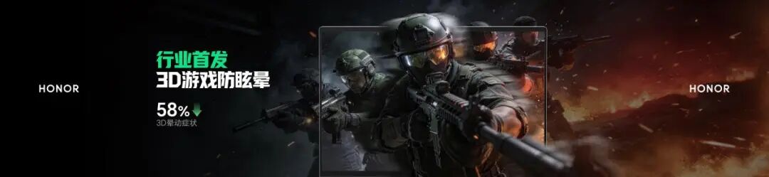 荣耀创新推出行业首发的3D游戏防眩晕技术,可减少58%的3D晕动症状,让更多玩家能够轻松享受3D游戏的乐趣。同时,屏幕还搭载最全的荣耀绿洲护眼技术,即便长时间激情对战,也能有效呵护双眼,缓解视觉疲劳,打造兼具专业性与舒适性的“最强战术目镜”。